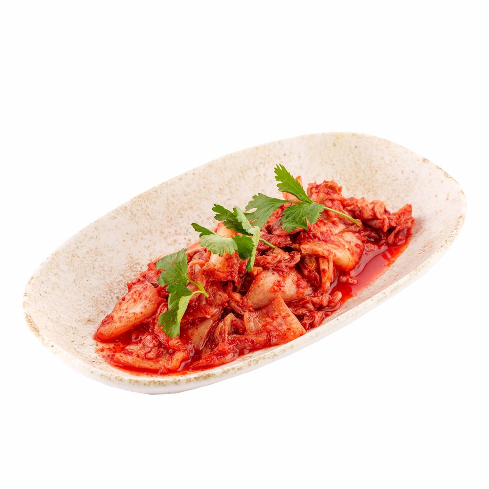 Корейский традиционный салат из пекинской капусты, заправленный красным перцем, чесноком, имбирем и рыбным соусом