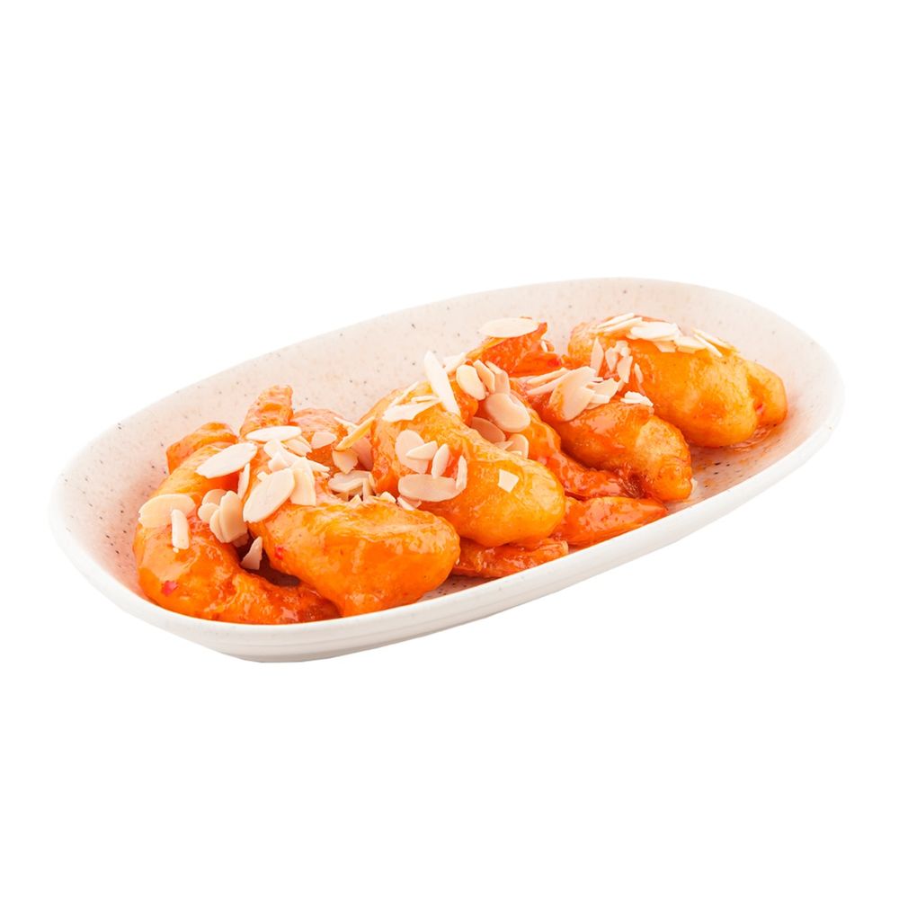 Жаренные Тигровые креветки в кляре, посыпанные миндалем