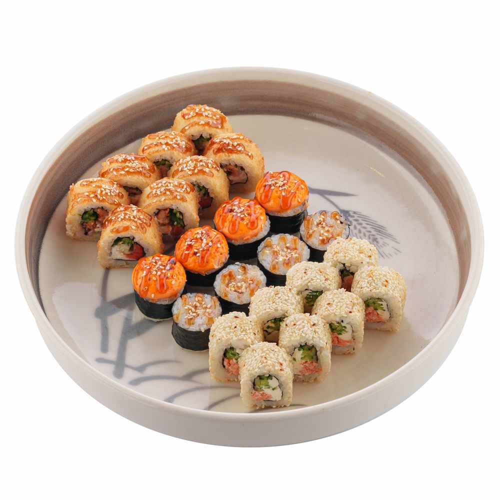Ролл «Американ» 8 шт, ролл «Чиз эби» 4 шт, ролл «Сенсей» 8 шт, «Унаги» ролл 4 шт